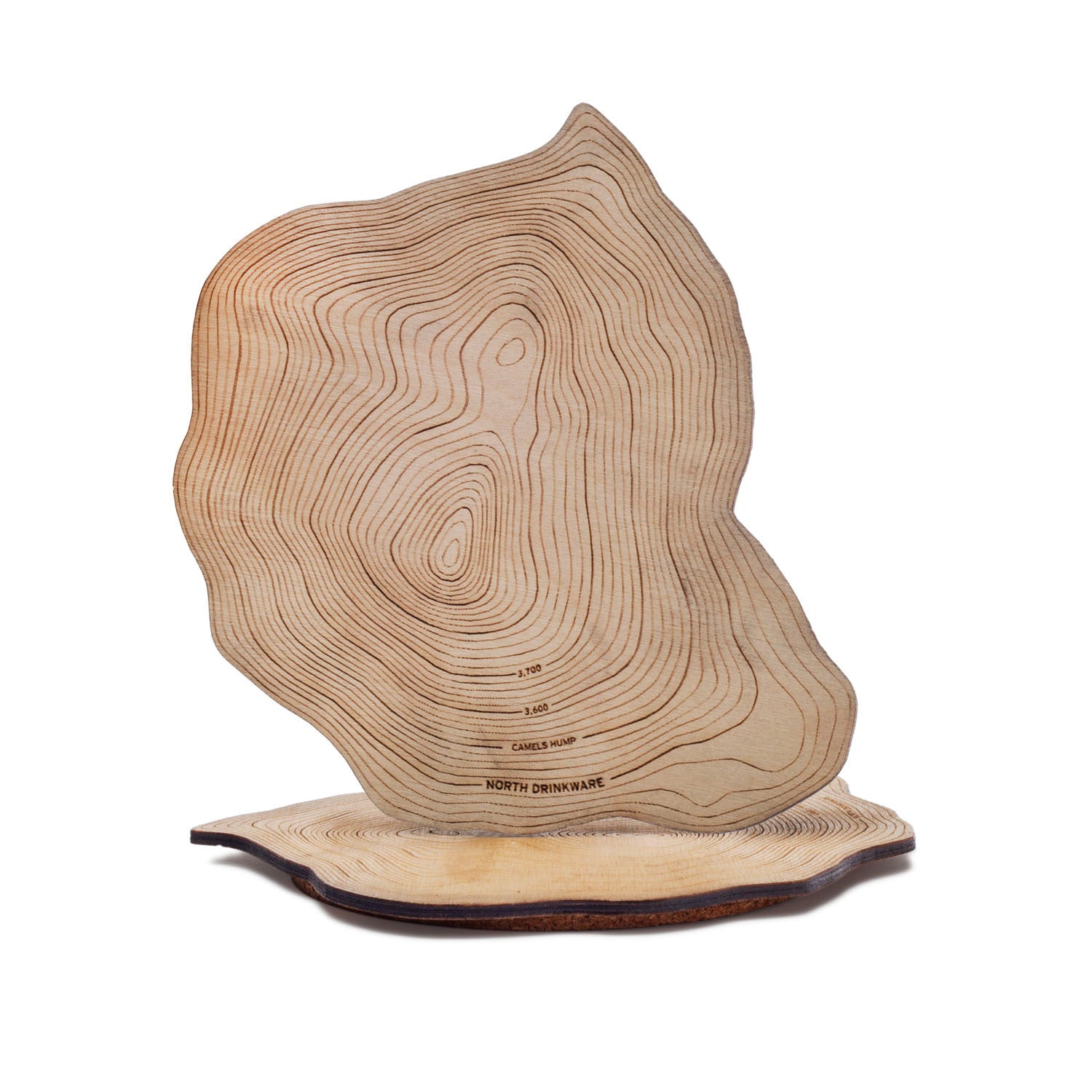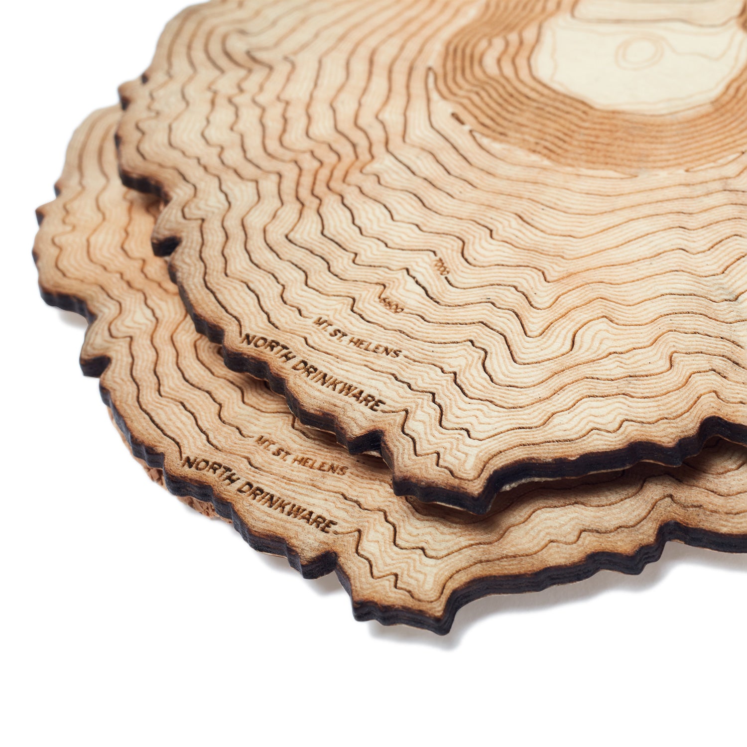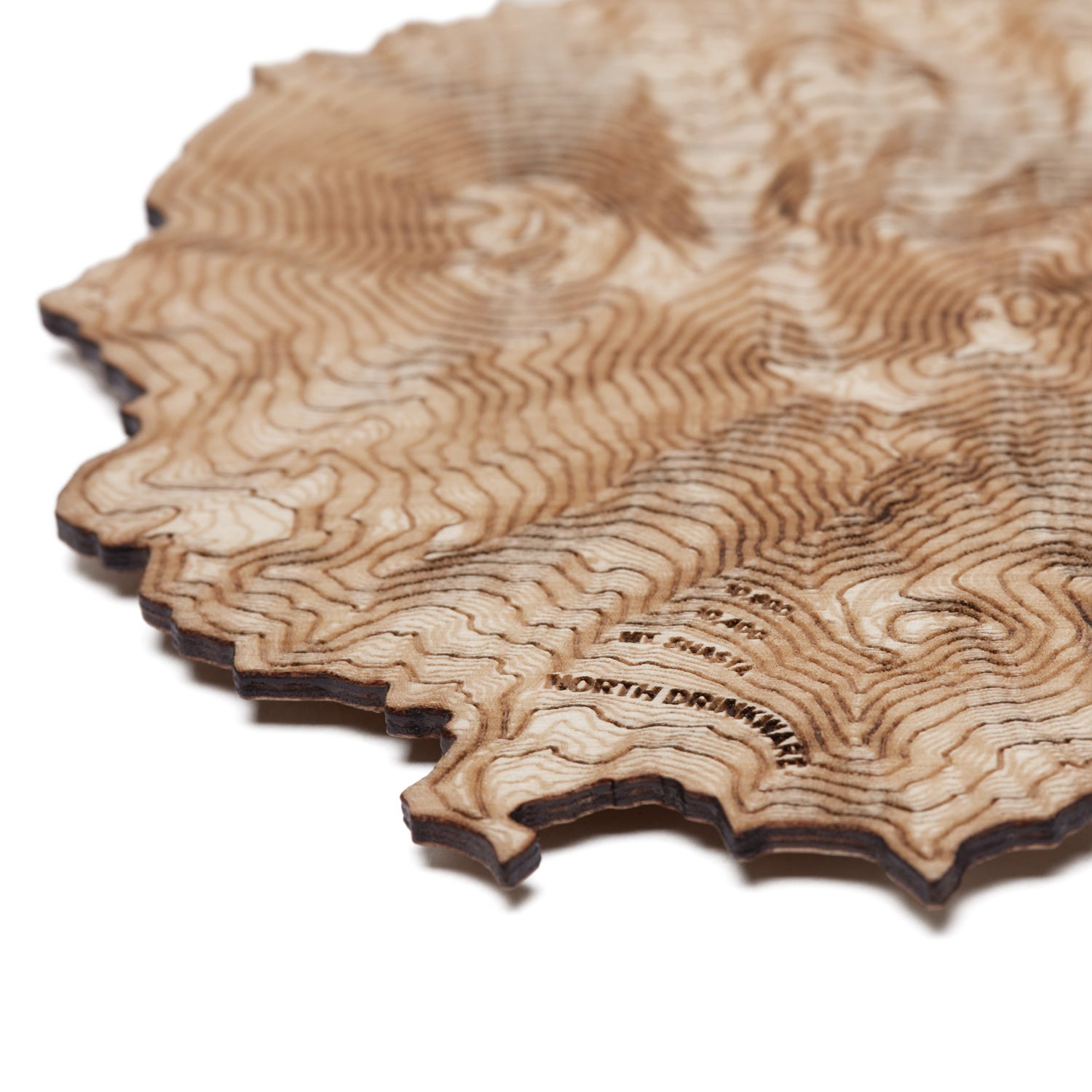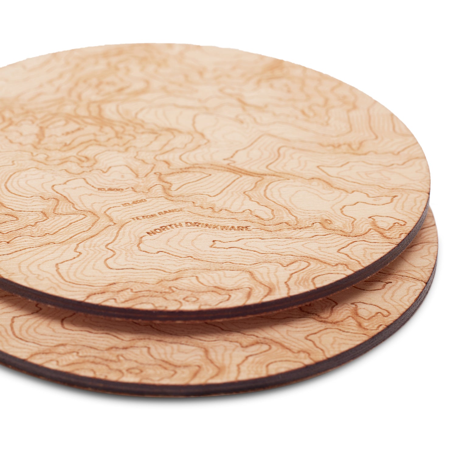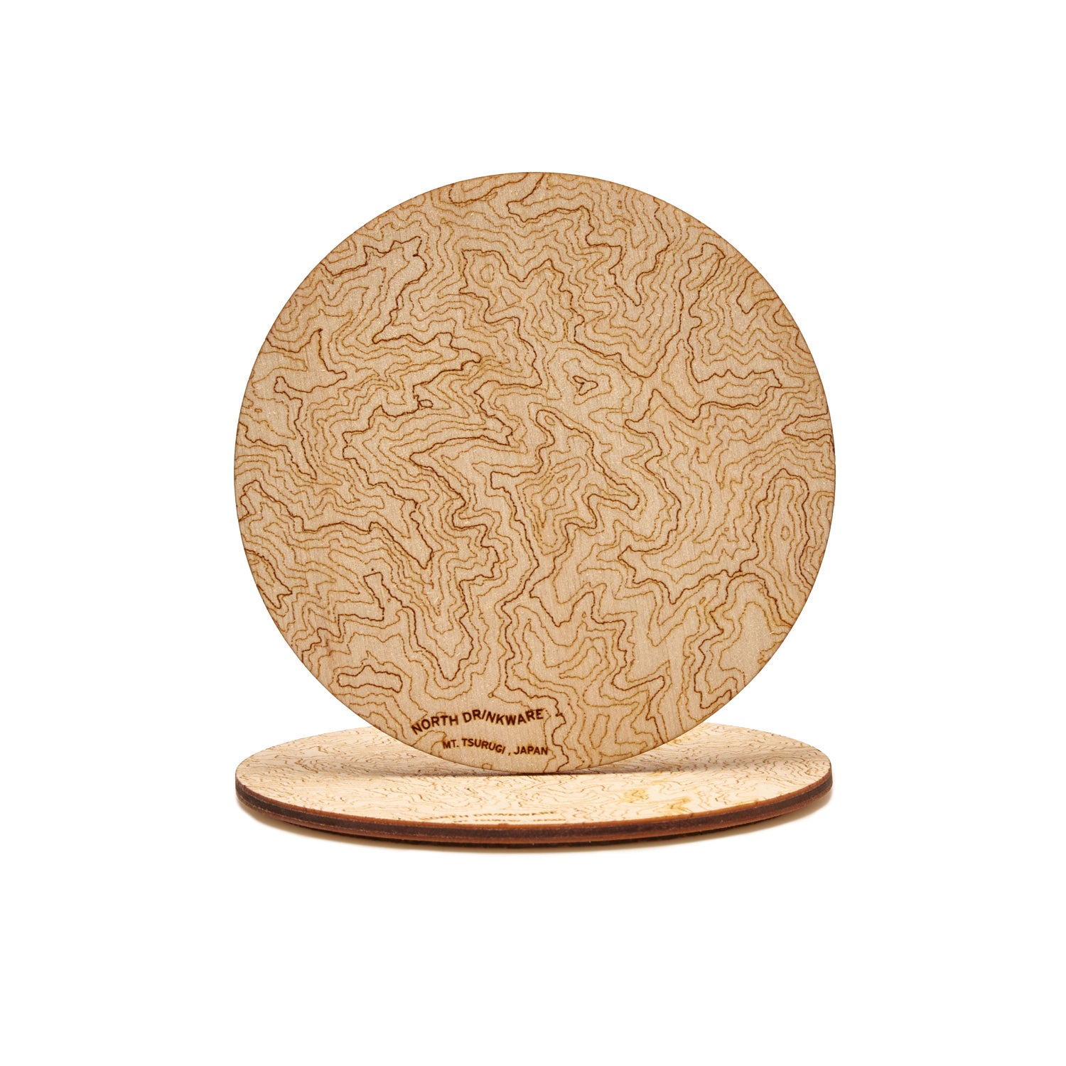 山々からインスピレーションを得た、特注のコースター。裏面にコルクを使用した made in USA。