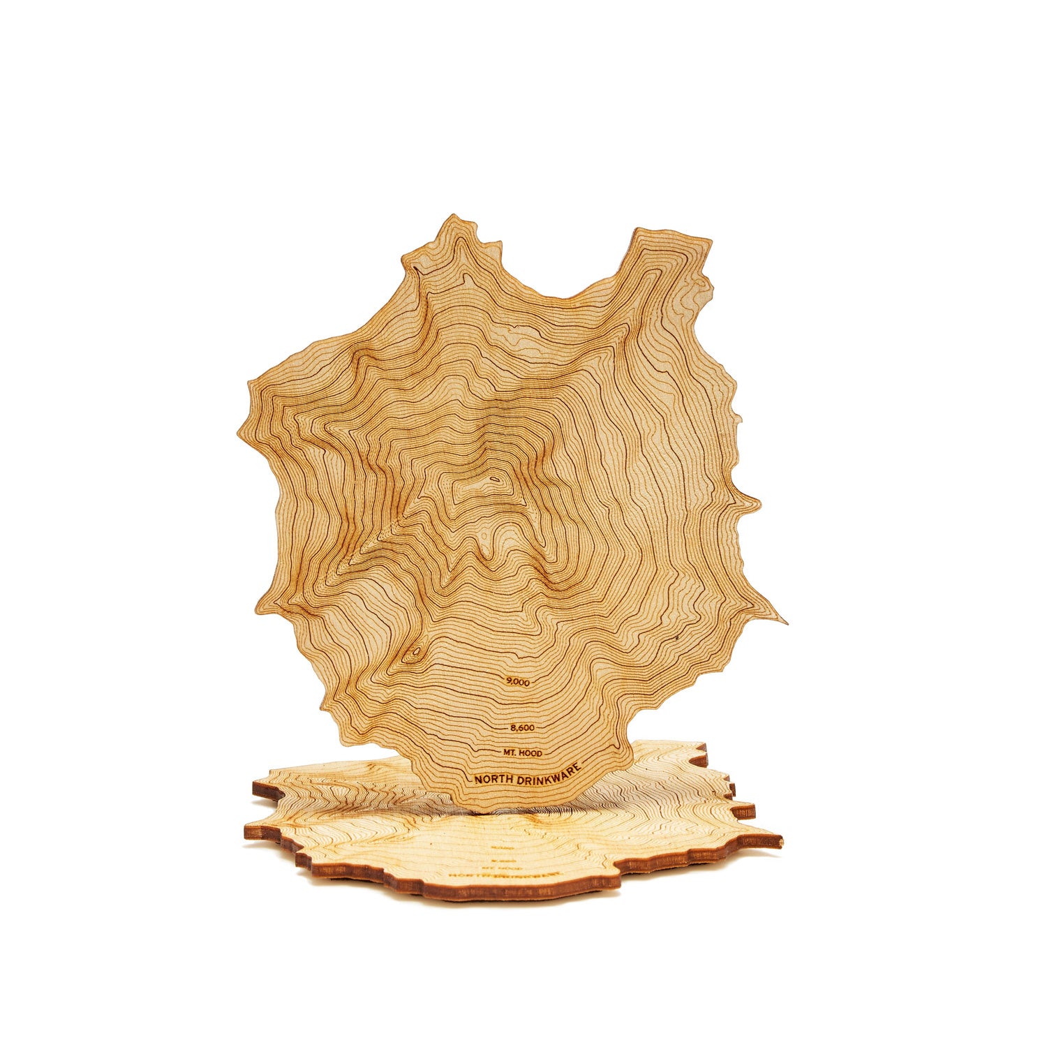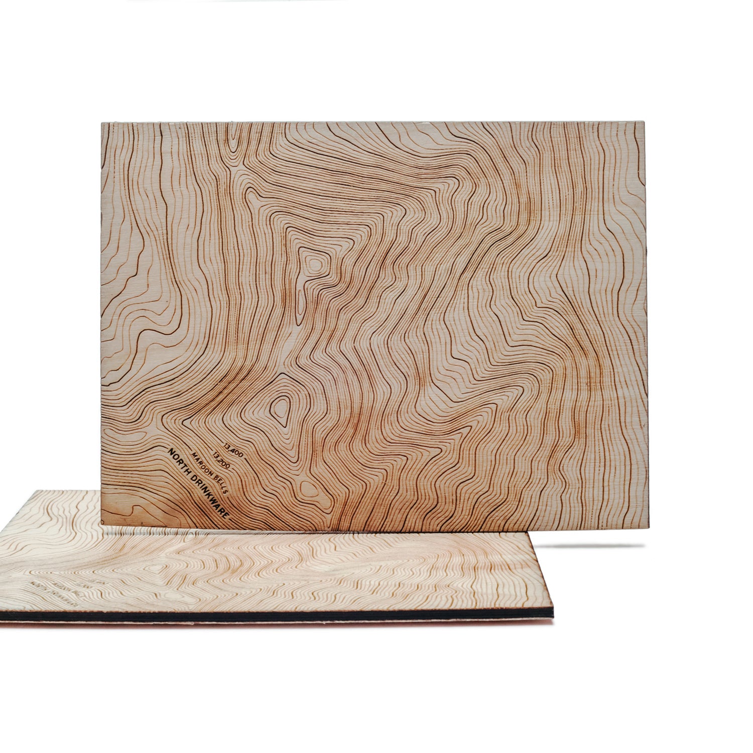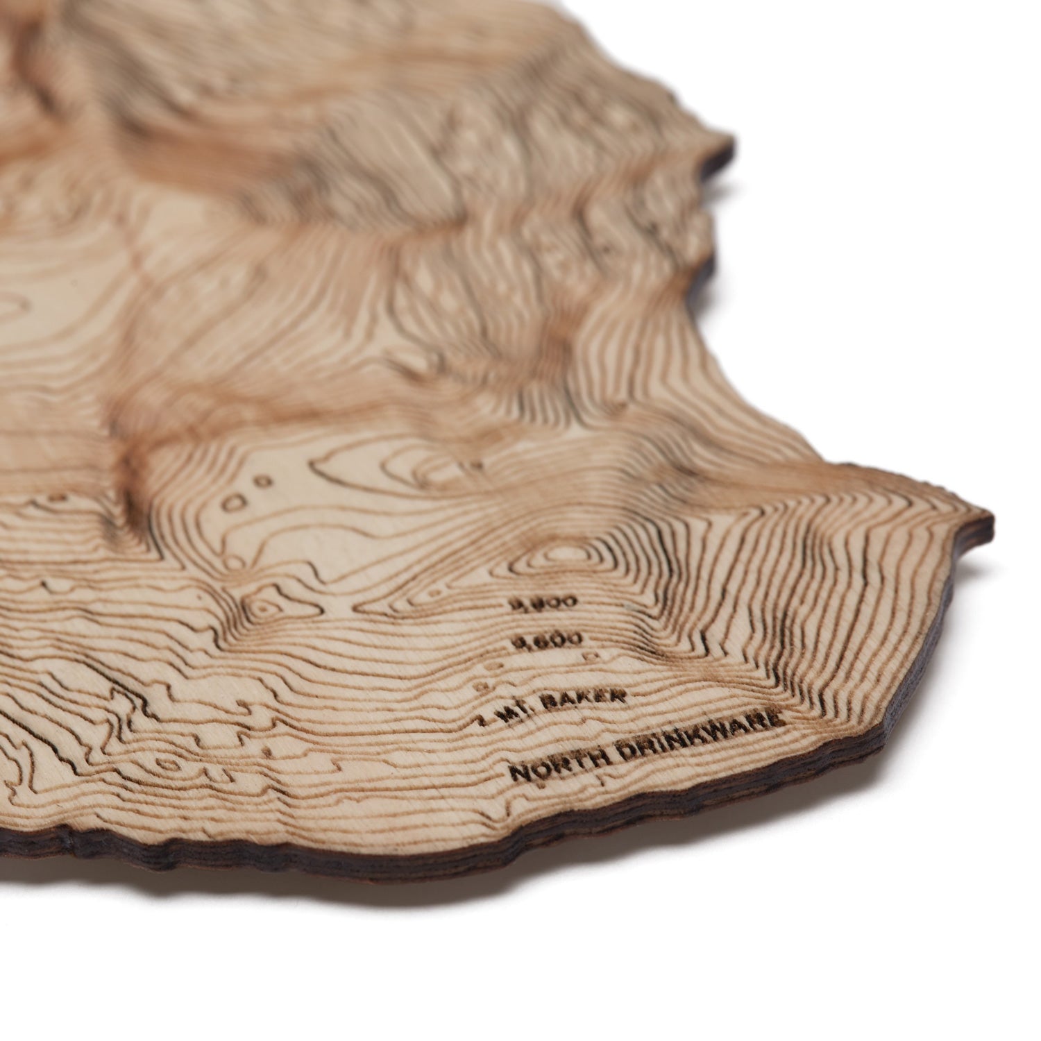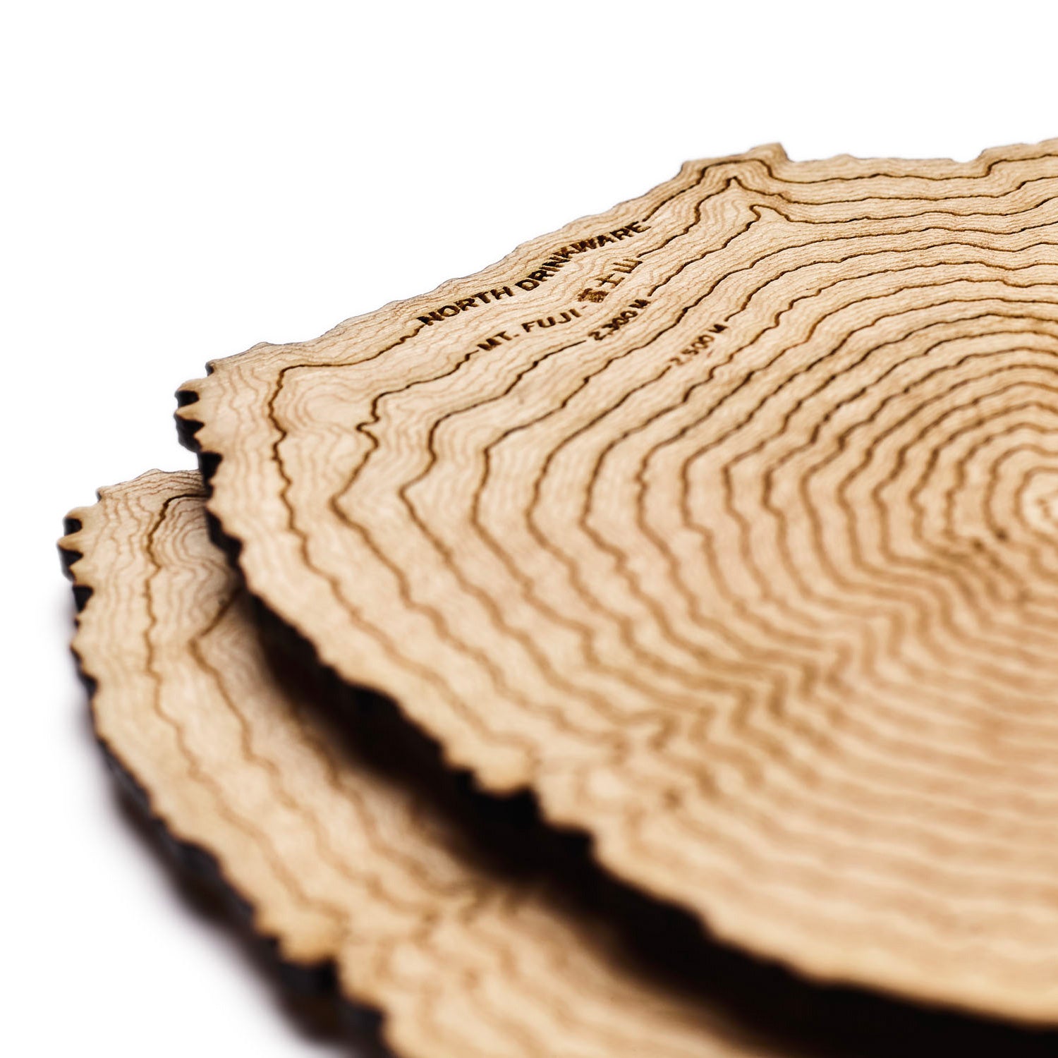 山々からインスピレーションを得た、特注のコースター。裏面にコルクを使用した made in USA。