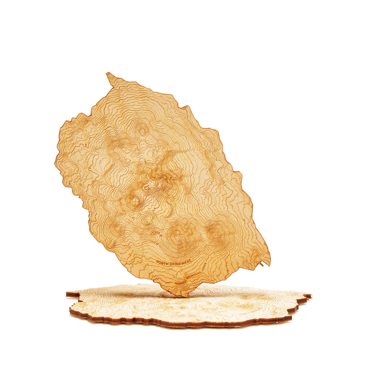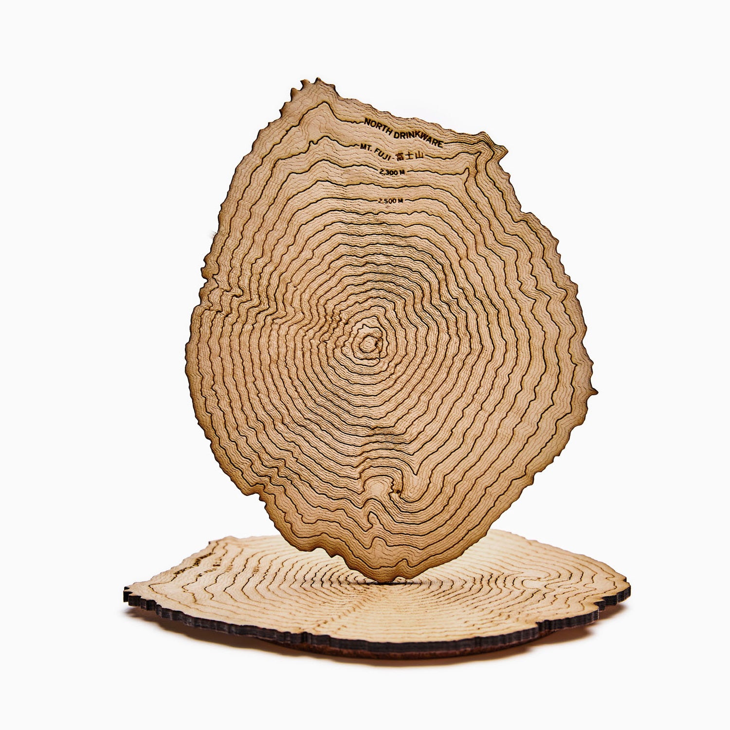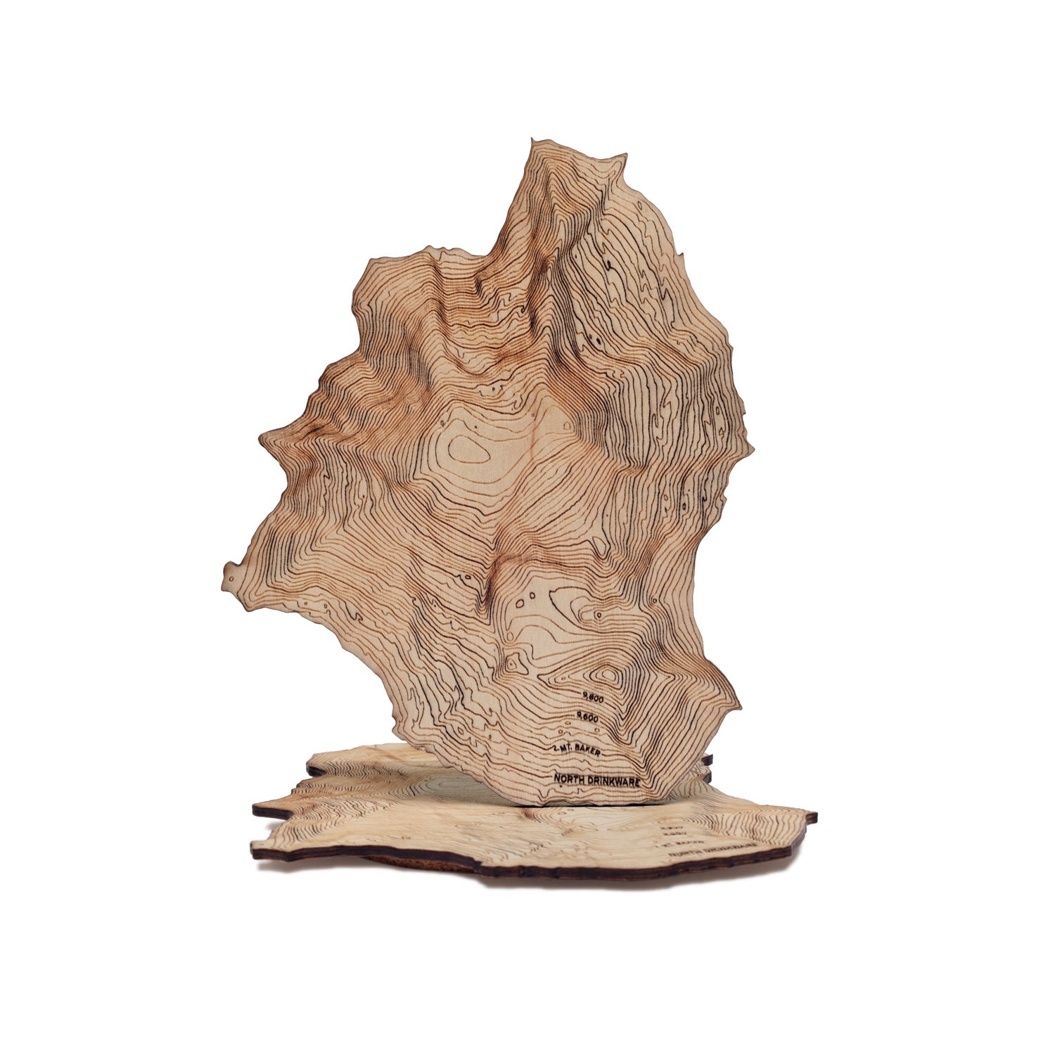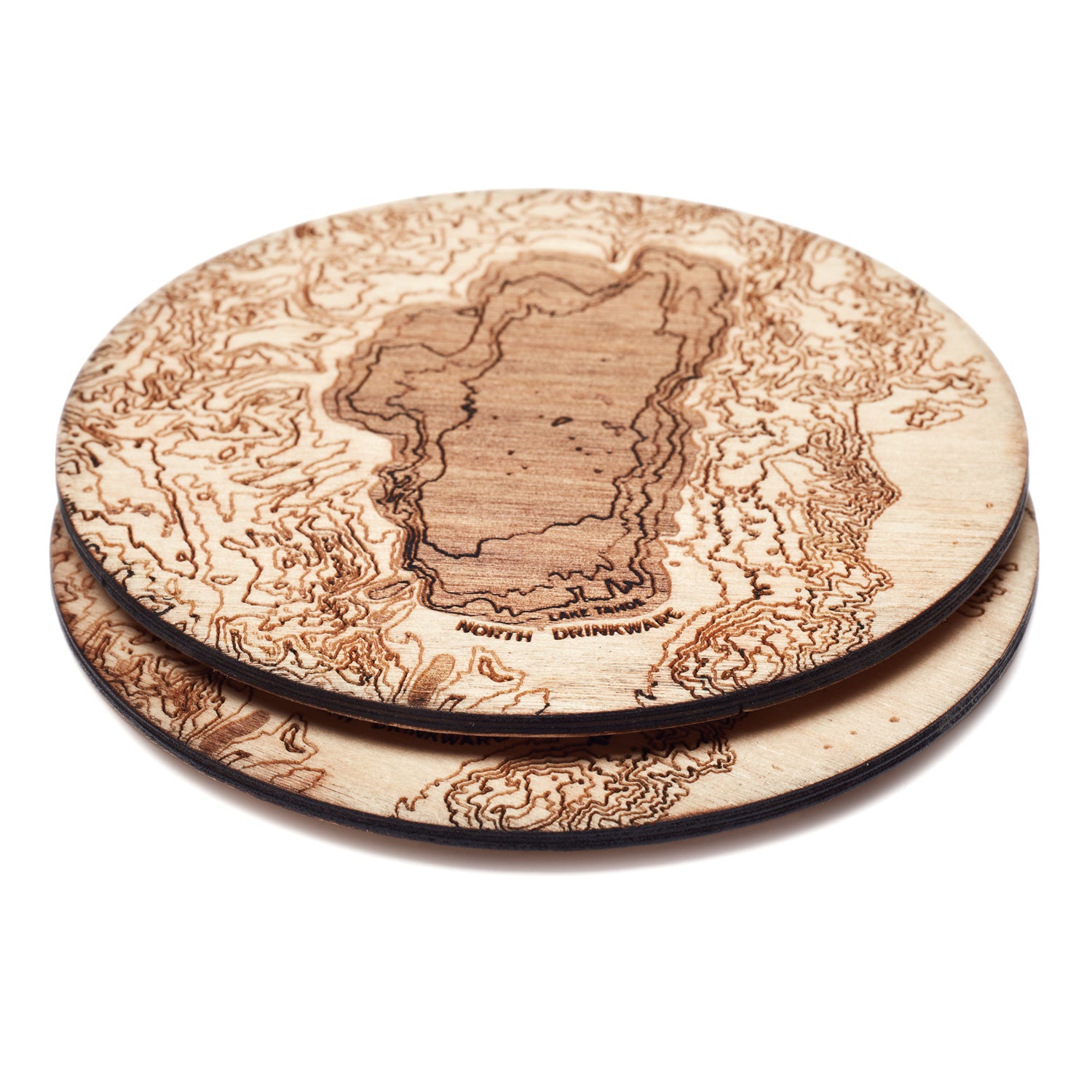 山々からインスピレーションを得た、特注のコースター。裏面にコルクを使用した made in USA。